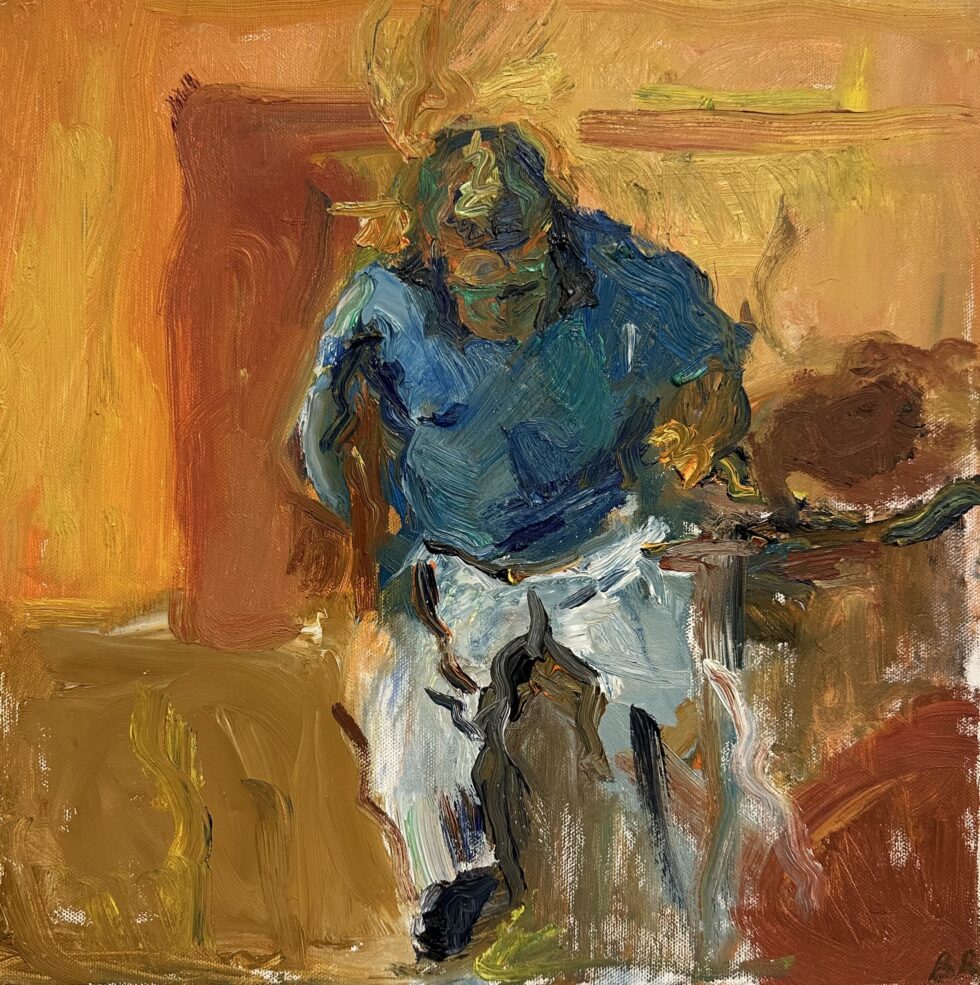 Bild: Bengt Rindner, Sovande man utanför baren i Pollina. Olja. Tillhör konstnären.